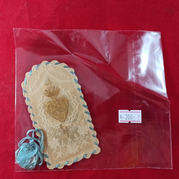 Vyšívaná záložka s medailnokem a nápisem Nejsv. Srdce Ježíšovo, smiluj se nad námi